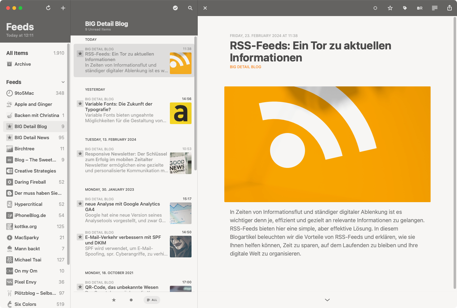 RSS-Feeds sind ein einfaches und effektives Tool, um Informationen effizient zu konsumieren. Sie sparen Zeit, helfen Ihnen, auf dem Laufenden zu bleiben und organisieren Ihre digitale Welt. Mit einem Feedreader können Sie alle Ihre Lieblingswebsites an einem Ort gebündelt und immer griffbereit haben.