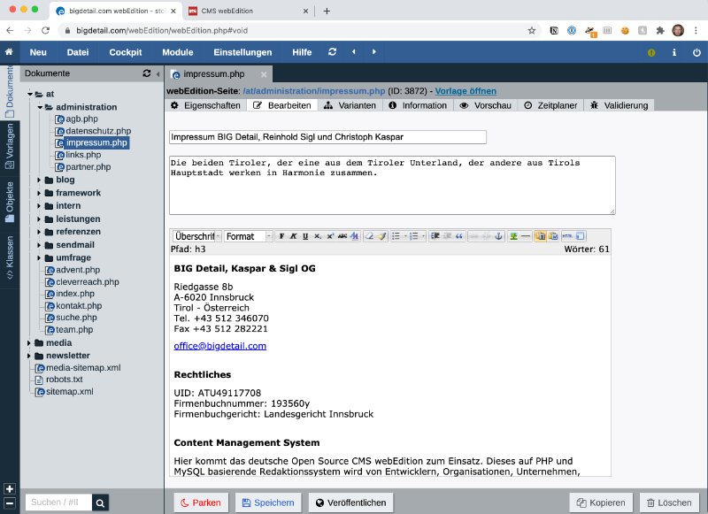 Viel wichtiger für Sie als Redakteur ist jedoch die einfache und deutschsprachige Bedienung des Systems. Wir erhalten von den Kunden immer wieder sehr positive Rückmeldungen über die einfache und logische Handhabung – auch von ungeübten Nutzern!